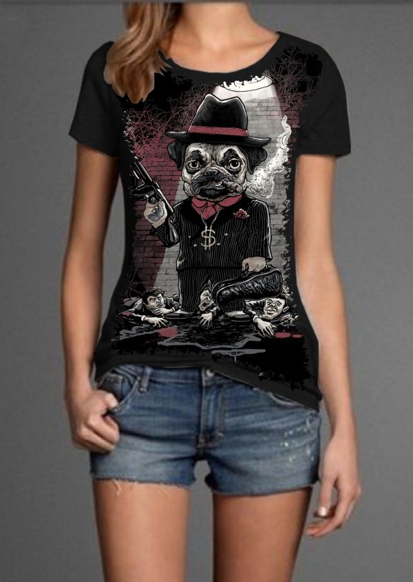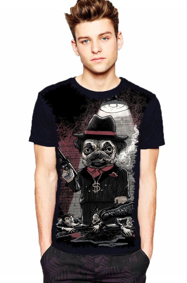 Camiseta Estilosa Fullprint Bulldog Gangster S-326