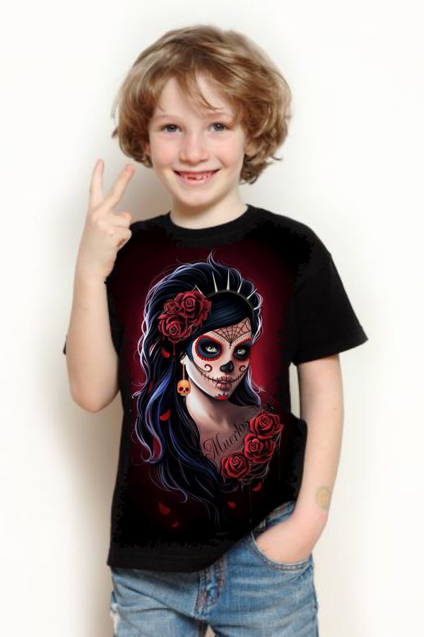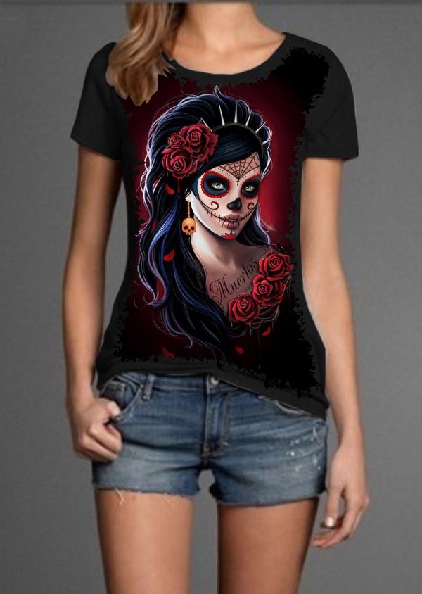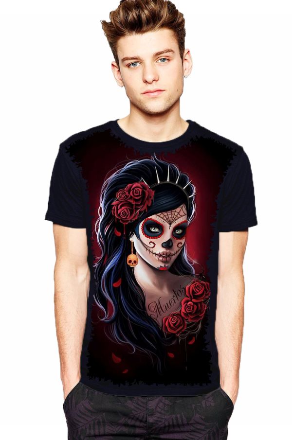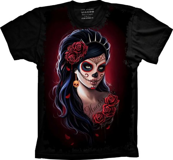 Linda Camiseta com Estampa Full Print Caveira Mexicana