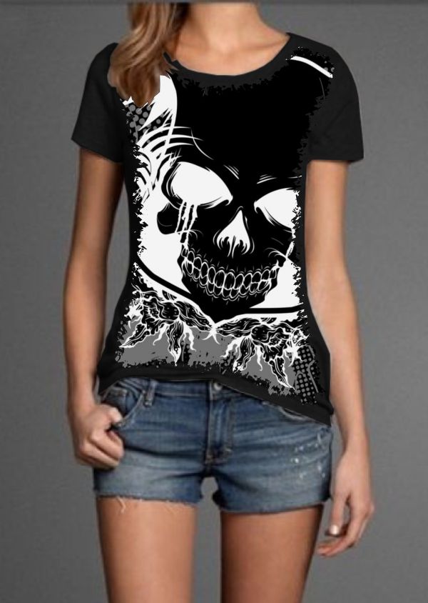 Linda Camiseta com Estampa Full Print Caveira Vampiro