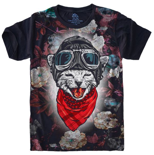 Camiseta Estilosa Fullprint Gato Aviador S-422