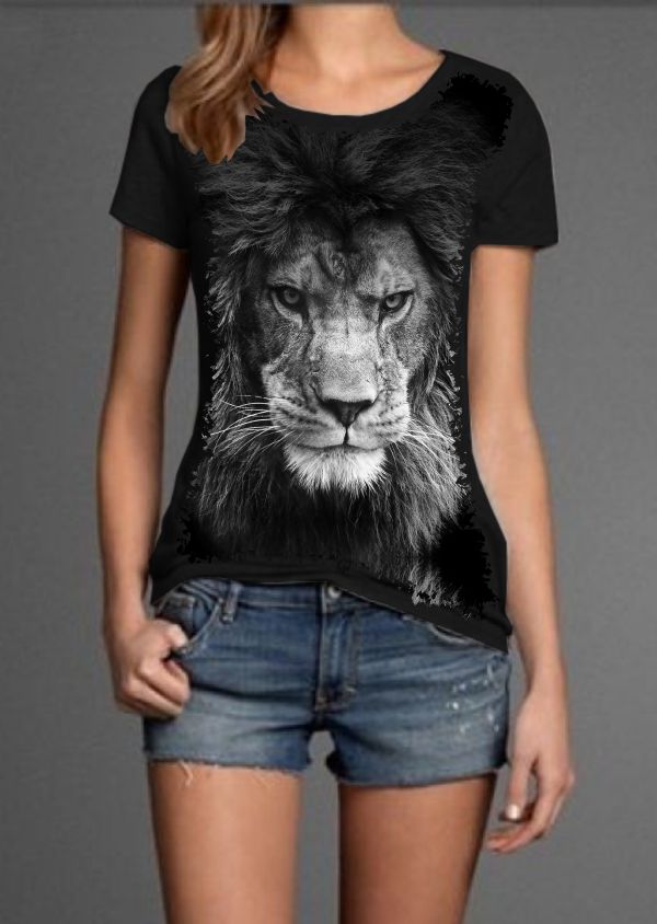 Linda Camiseta com Estampa Full Print Leao Negro