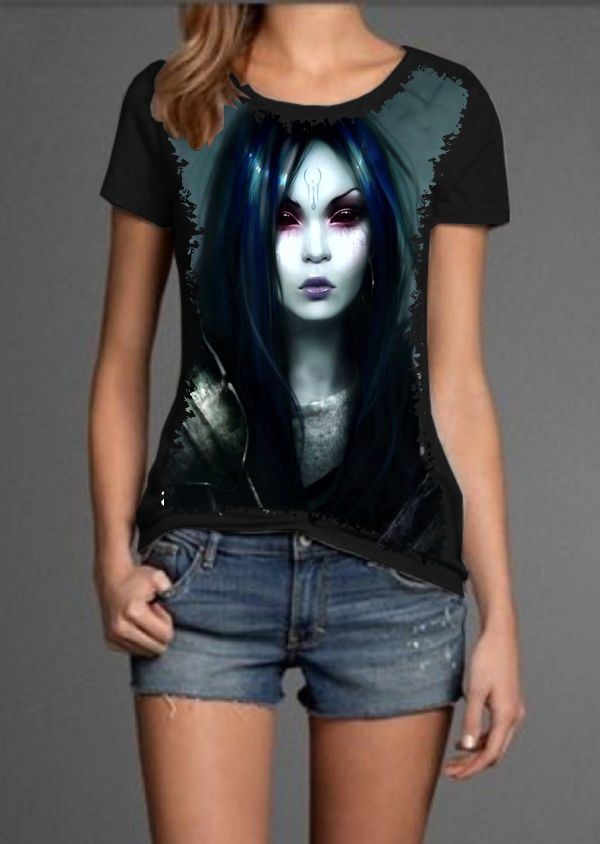 Camiseta Estilosa Fullprint Mulher Gotica S-307