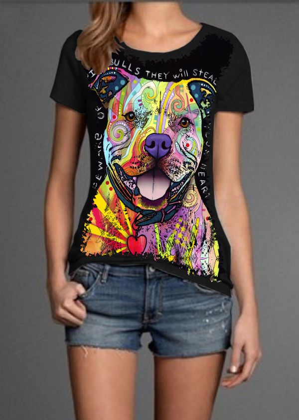 Linda Camiseta com Estampa Full Print PitBull Colors