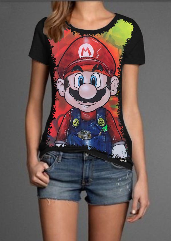 Linda Camiseta com Estampa Full Print Super Mario Bross