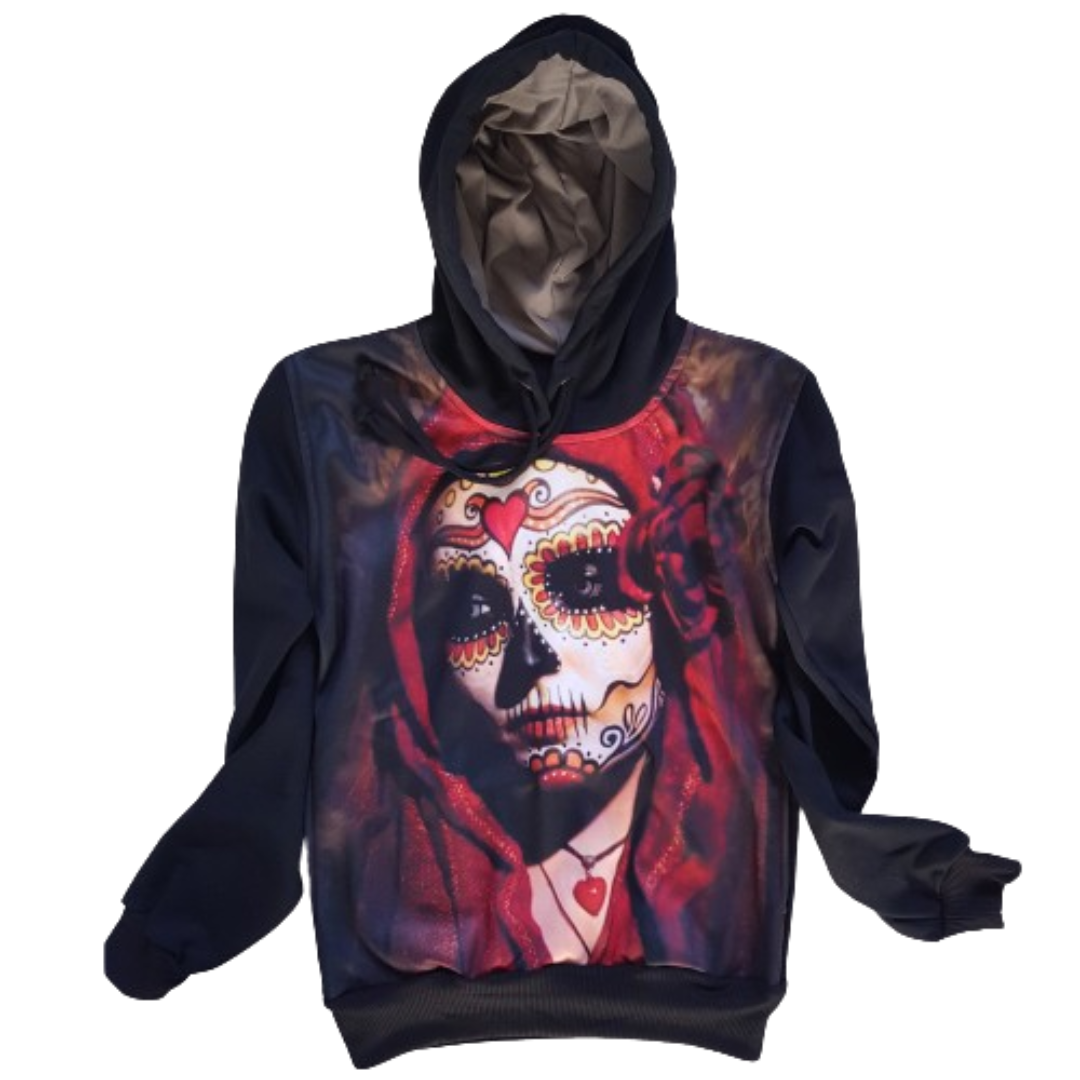 Moletom Full Print Estiloso Flanelado com Bolso e Capuz Caveira Mexicana MSB-289
