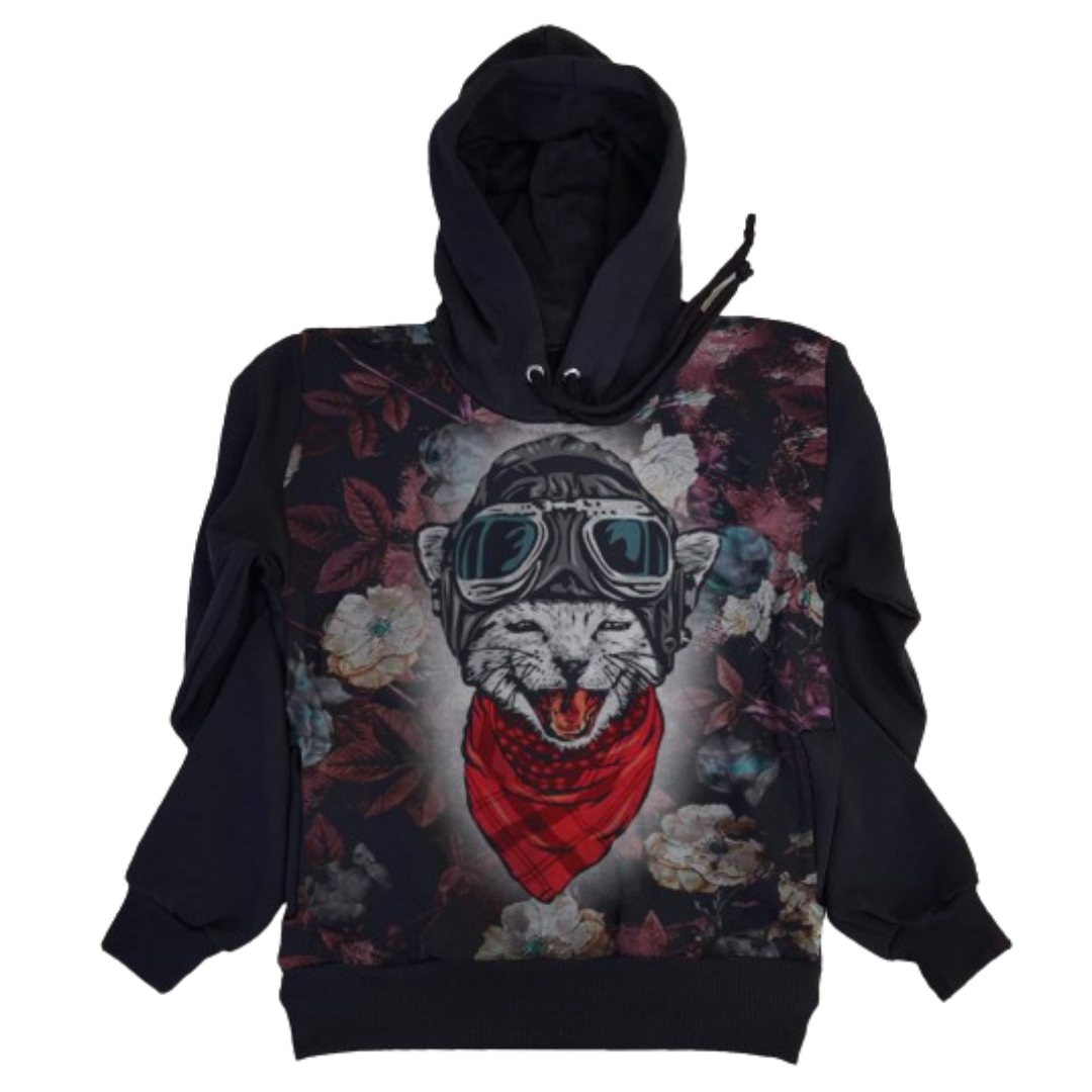 Moletom Full Print Estiloso Flanelado com Bolso e Capuz Gato Aviador MSB-422