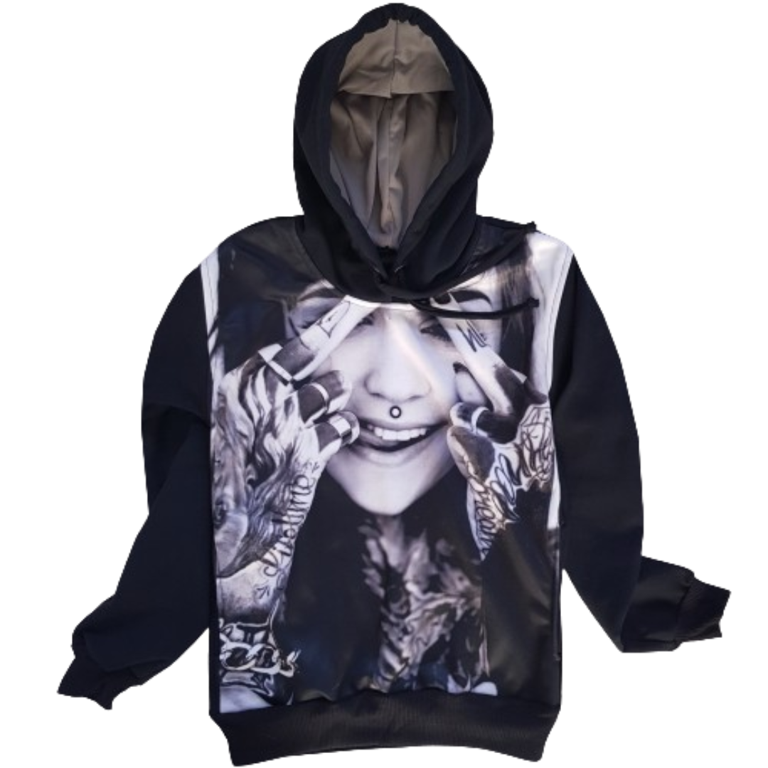Moletom Full Print Estiloso Flanelado com Bolso e Capuz Mulher Tatuada MSB-288